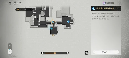 場所は、流雲渡し(1F)の界域アンカー「流雲渡し星槎乗り場」から南方向に進んだところです